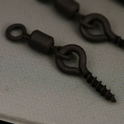 The inclusion of a hook swivel instead of a simple rig ring, allows the hook bait more rotational free movement and controlled separation of hook and hook bait. This helps to ensure that rigs incorporating these components work to their maximum potential.