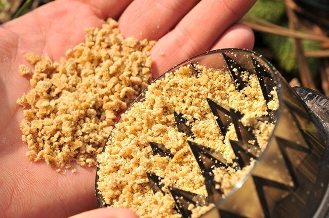 Crushed bait is a great addition to any PVA bag or spod mix, as it releases flavour faster and also breaks down quicker than whole baits do. The Krusha takes all of the effort out of grinding up whole baits, and can be used with boilies, pellets and particles such as tiger nuts, and will quickly reduce even the hardest of baits into a crumb. Simply put some baits in the Krusha, put the two halves together, and then keep twisting it back and forth until the required texture of crumb is reached. The Krusha is made of very tough and durable plastic, and is built to last, and its shape is designed such that the two halves are easy to grip and twist. A Large version is available for processing bigger quantities of bait, such as to add to a spod mix, or the Small one is perfect when making up a PVA bag mix.
