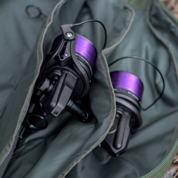 The up and down configuration allows for optimal space saving and a more balanced item of luggage to carry. Incorporating padded dividers and a re-enforced padded base to help protect your rods. Also included are short, long and lead external pockets.