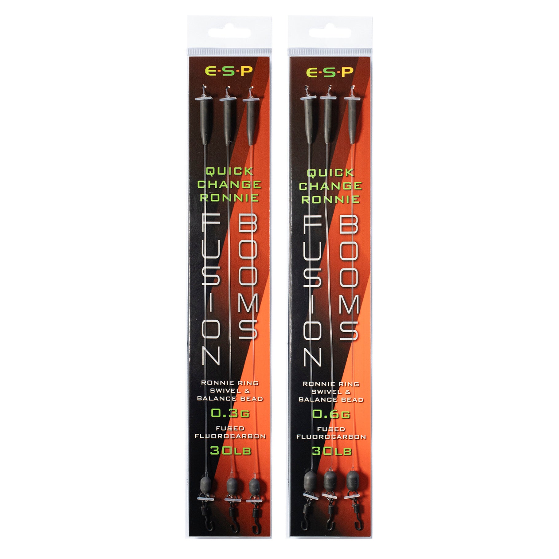 Designed to be used with a Ronnie or spinner rig incorporating either an ESP Quick Change D- sleeve, or shrink tube. The swivel provides 360 degree rotation on the metal ring for excellent hooking potential, and these booms are available with either 0.3g or 0.6g tungsten balance beads incorporated. This allows the angler to tailor the booms to a variety of hook and pop-up sizes.
